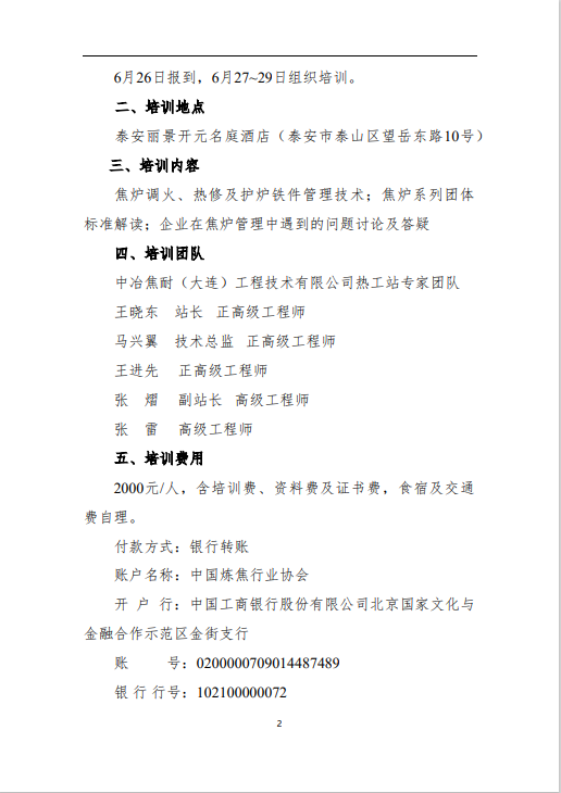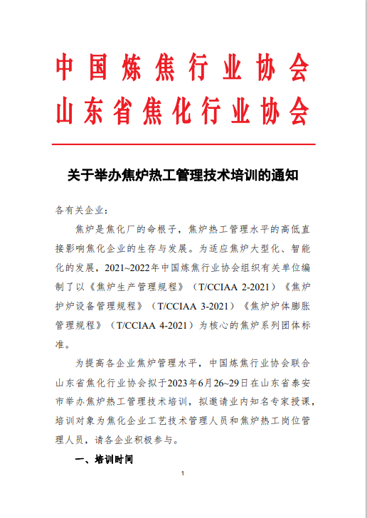 關(guān)于舉辦焦?fàn)t熱工管理技術(shù)培訓(xùn)的通知